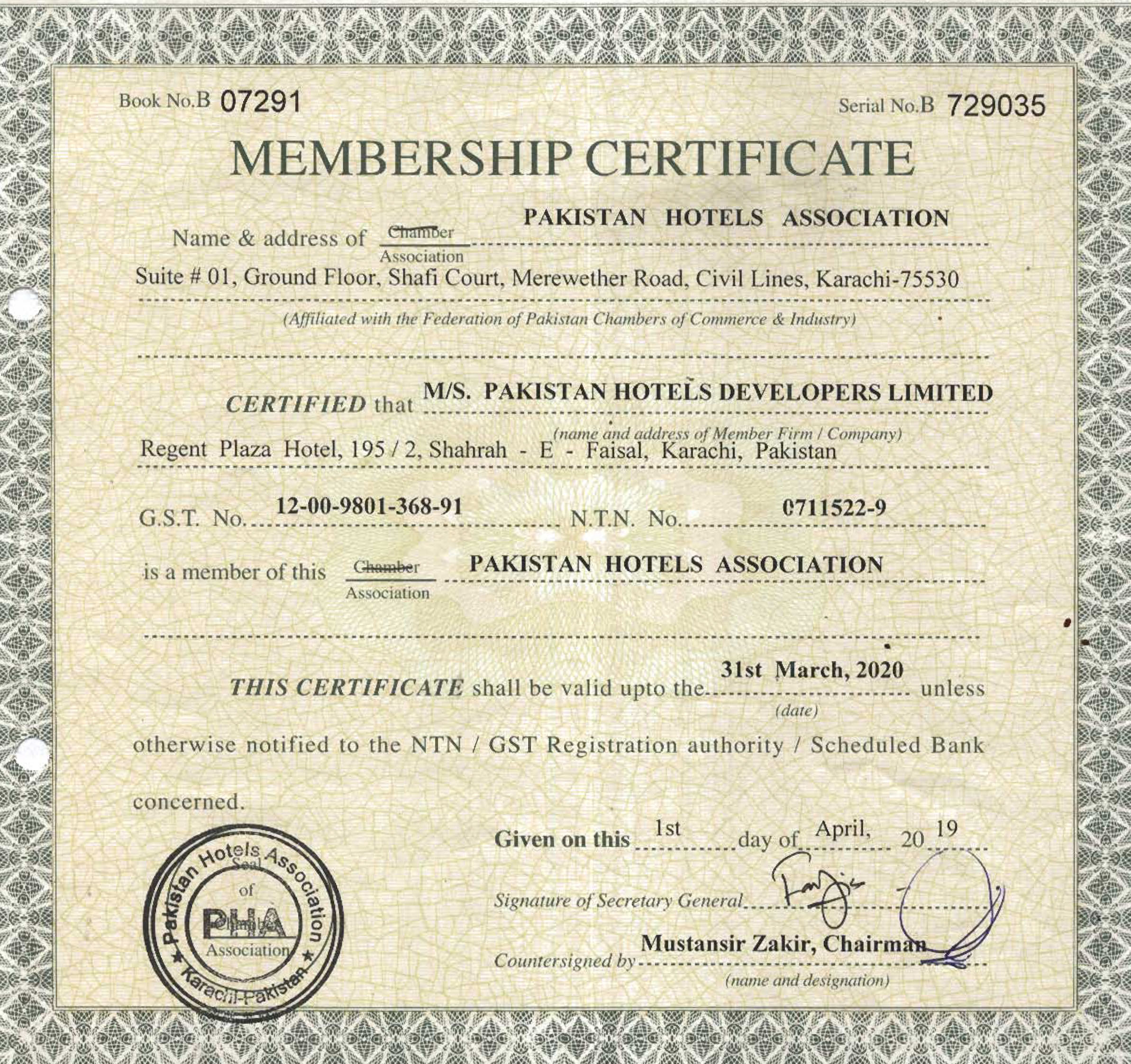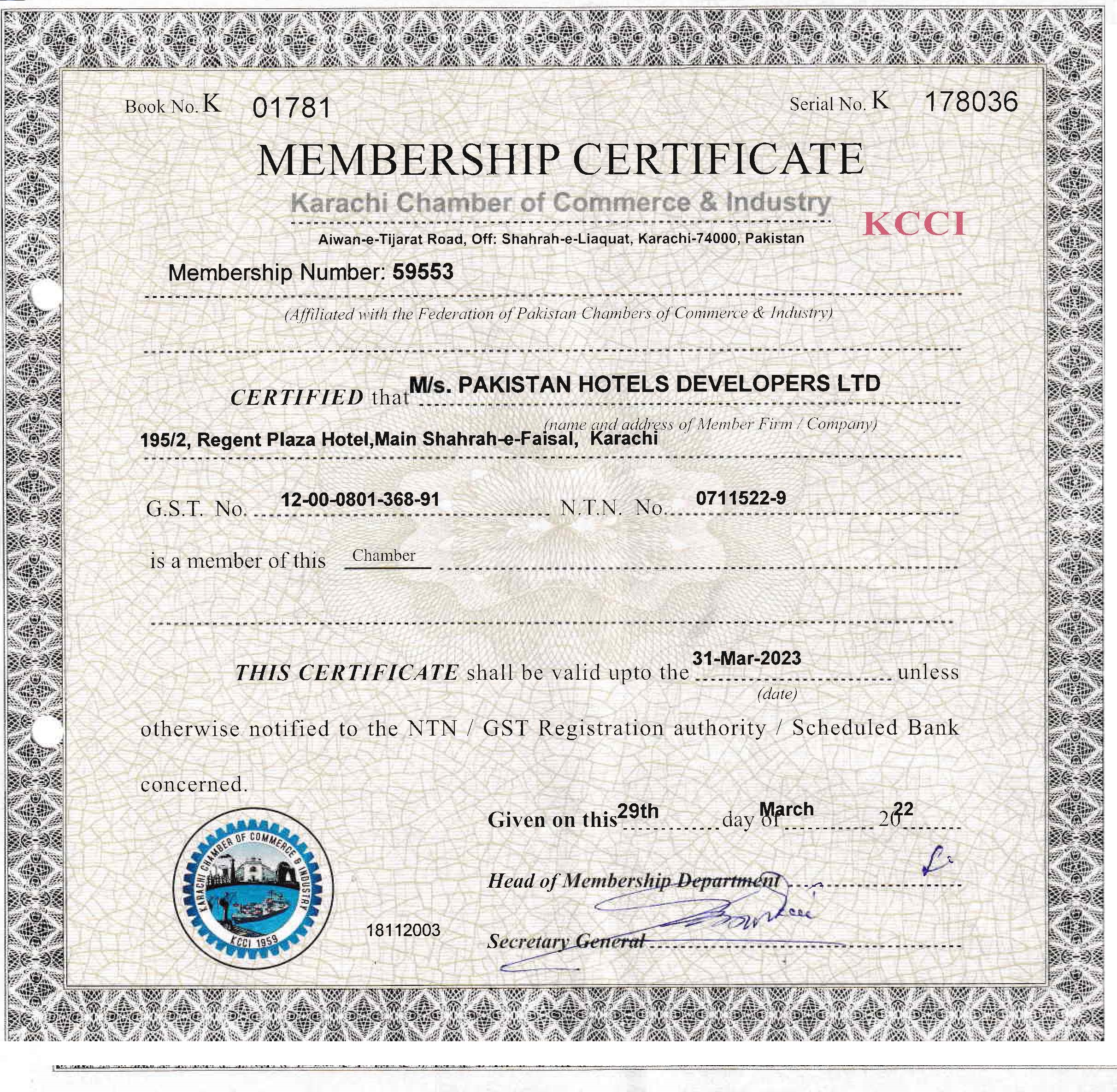 Membership CertificateKarachi Chamber of Commerce & Industry (KCCI)